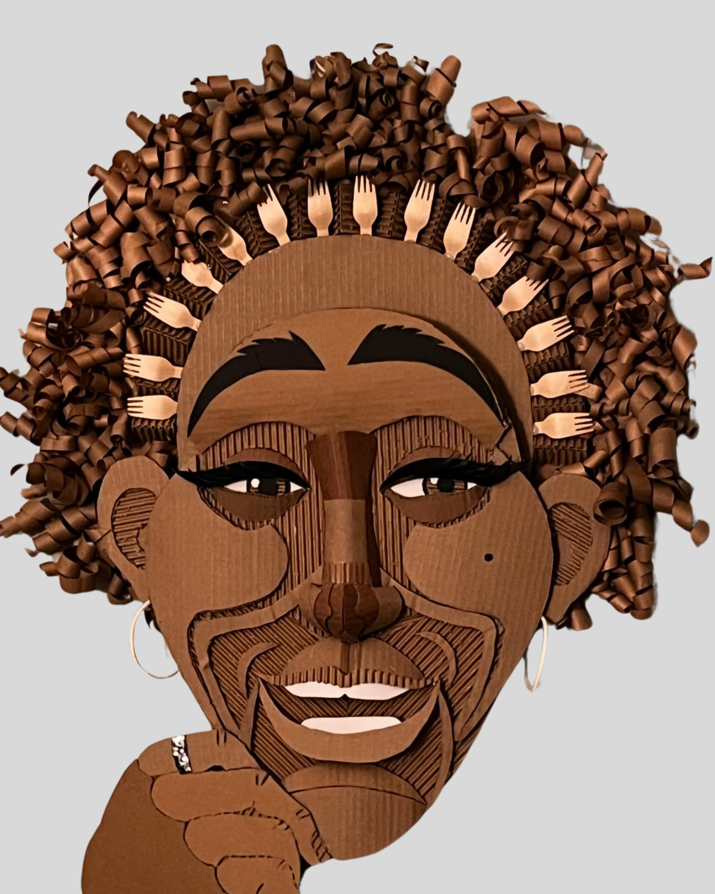 Every portrait Sylvia creates begins with a conversation and ends with something no one else will ever have. She works entirely by hand using recycled cardboard and paper — no paint, no digital tools, nothing manufactured. What emerges is a face with texture, depth, and a quiet kind of life to it.